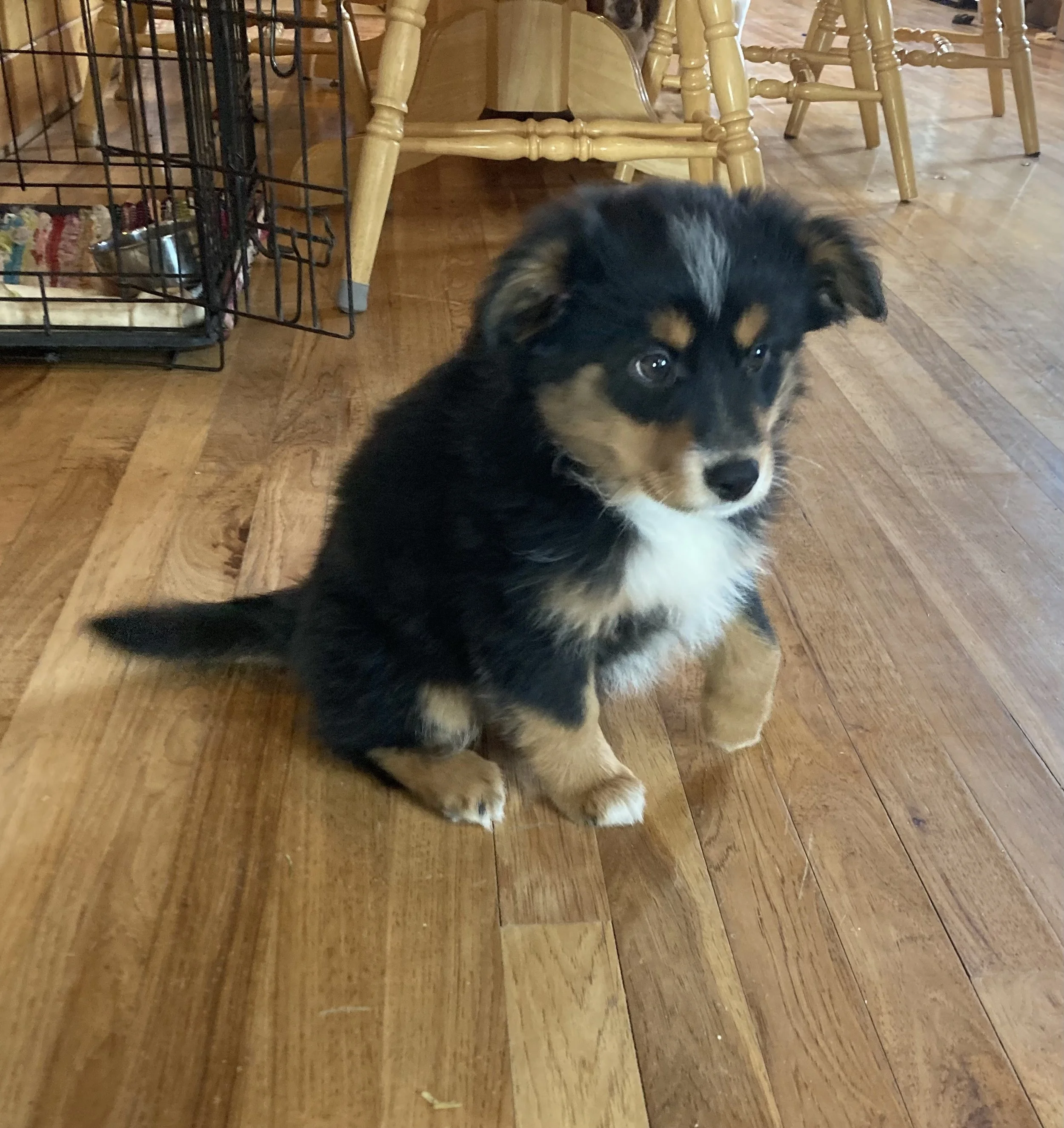 Meet our newest member, Sally! She is a black tricolor from a purebred, ASDR breeder in California. She is so full of puppy energy and lives to play fetch. Sally is friendly to everyone she meets and loves to explore. Lord willing, she will be our next mama dog. She has a lot of growing to do and will enjoy her puppy life. We are planning on her first litter the summer/fall 2027.